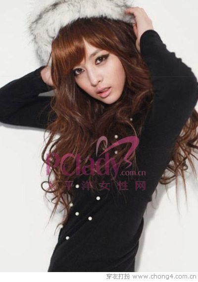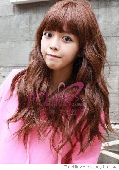 06 半圓劉海遮住高傲的額頭,而彎彎卷卷的長發(fā)可以擋住圓圓的臉頰,達到視覺上的瘦臉效果。
